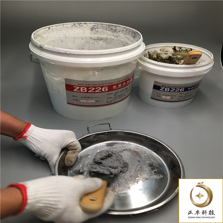 ZB226耐磨涂层是一种聚合物材料,是由高性能耐磨颗粒(碳化硅、氧化锆、钛粉、磷铁粉末等)与改性增韧耐热树脂进行复合得到的高性能耐磨聚合材料。用于修补因冲蚀、腐蚀和气蚀对设备的磨损,也用于在有耐磨、要求的机件表面制备耐磨涂层。如电厂、港口、水利水电、矿山等水泵、渣浆泵、脱硫浆液泵、浆液循环管道、酸碱槽、风机壳体、磁选机及浮选机等的修补和防护。
