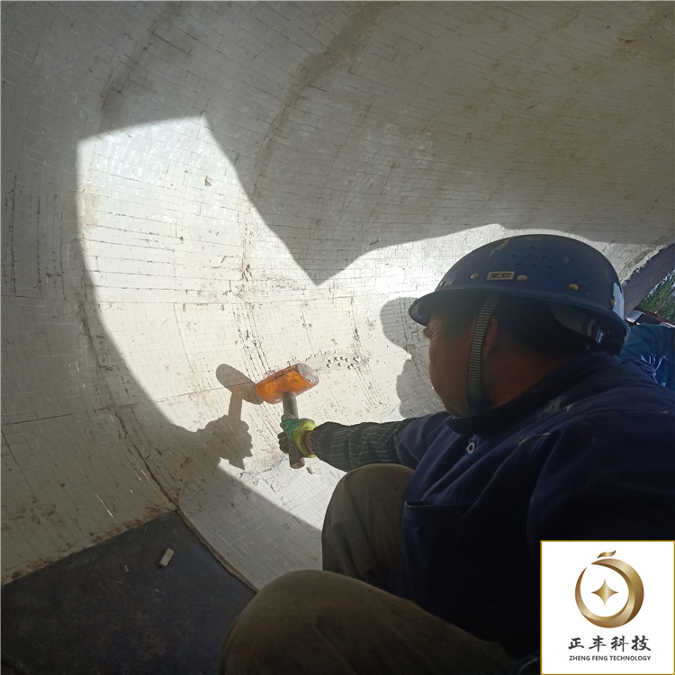 施工后需要用橡皮锤轻轻敲打,使耐磨陶瓷片于设备内壁充分粘贴。