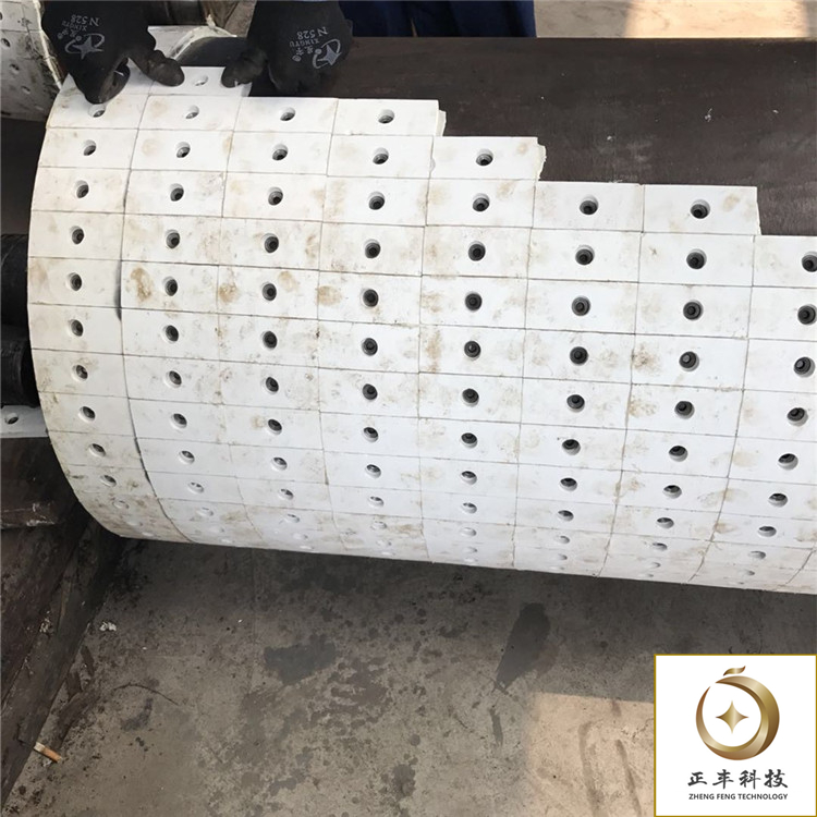 (2)耐磨陶瓷衬板背面均匀涂抹陶瓷粘贴胶,厚度约1.5-2mm,涂胶时应避开焊接孔,防止焊接孔堵塞,造成后期焊接不牢固。