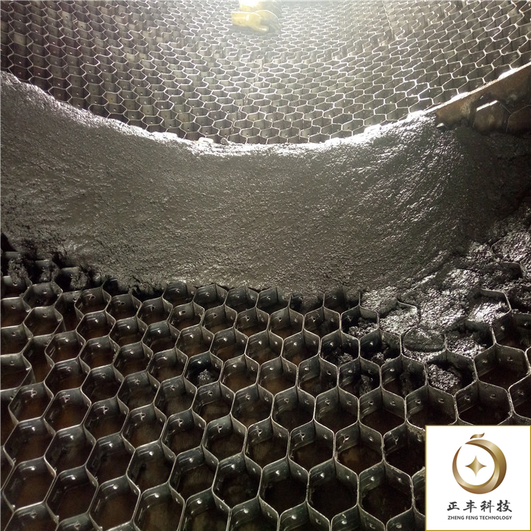 (1)具有较高的机械强度和刚度。陶瓷耐磨料主要由耐磨骨料和结合系统组成,密度大,无大的宏观缺陷,强度可达150MPa,是一般混凝土和耐火浇注料无法企及的,主要是采用了离子化合物和部分人工合成共价化合物,其离子键结合牢固,所以强度和刚度很大,可抵御物料的冲击力和剪切应力。而结合系统由于采取复合强化措施和处理,形成化学结合,致使其强度很高。